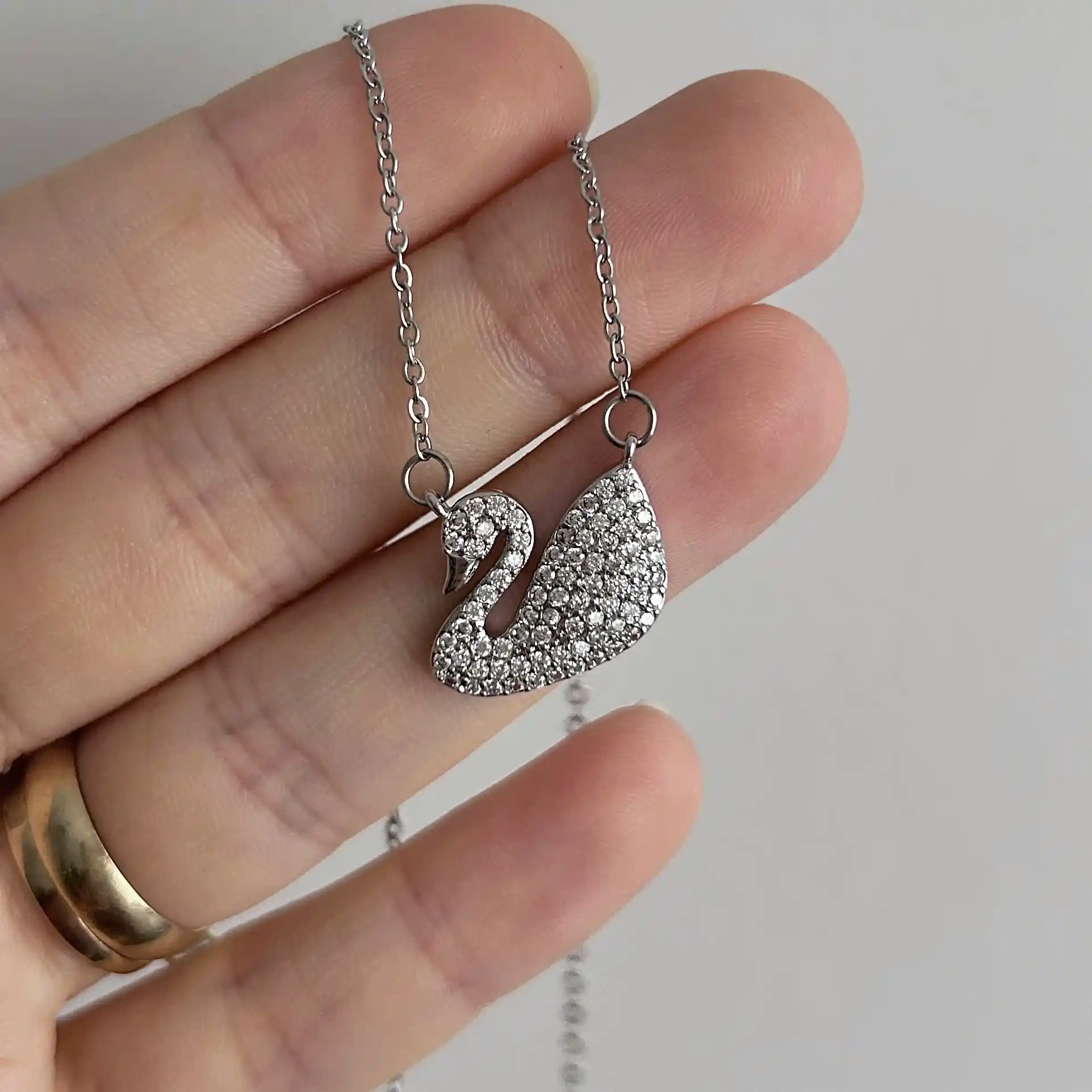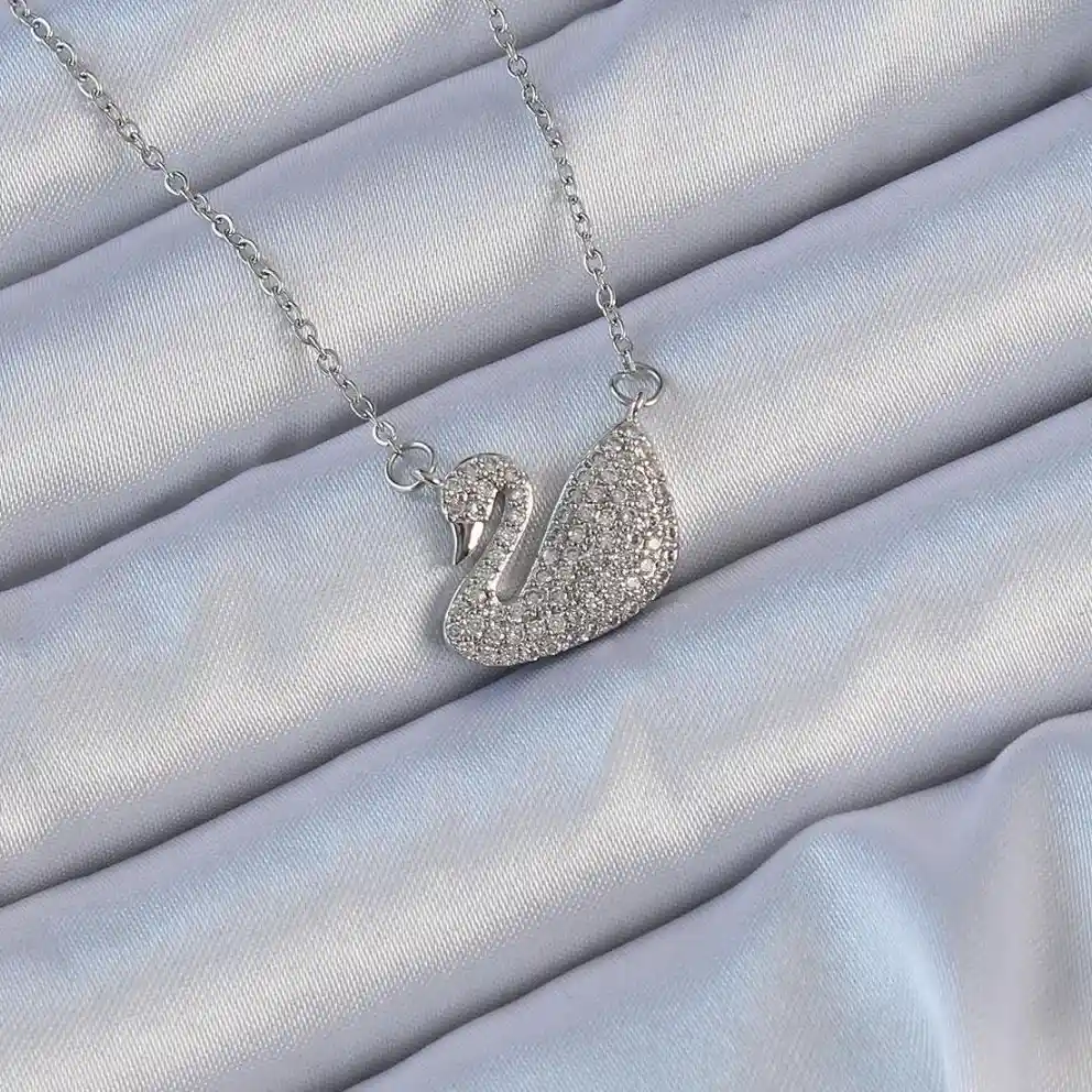 Yeni Çelik Kuğu Kolye satışta! Kolye uzunluğu 40 cm’ dir. Uzatma zinciriyle birlikte 46 cm’ e kadar uzayabilir. Zinciri çelik malzemedir, kolye ucu korumalı gümüş kaplamadır. Kararmaya karşı dayanıklıdır. Gümüş renktedir. Daha uzun ömürlü kullanım için, ürününüzü su ve kimyasal maddelerden uzak tutmanızı öneriyoruz 💗